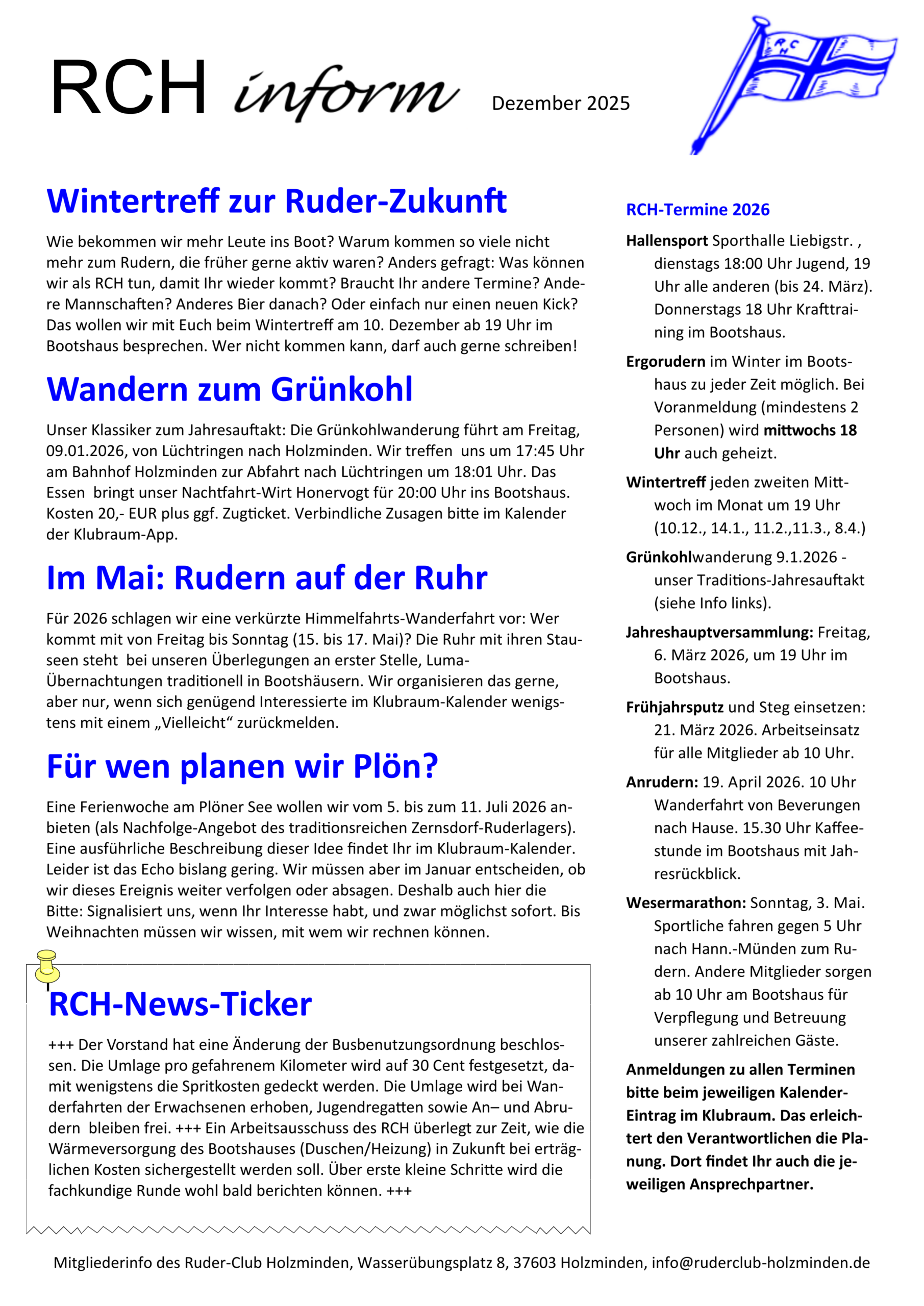 Jahreshauptversammlung: Freitag, 6. März 2026, um 19 Uhr im Bootshaus.